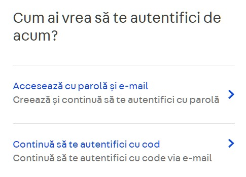 • După ce ai confirmat adresa ta de email, poți alege modalitatea cea mai potrivită de logare în contul tău de marketplace.