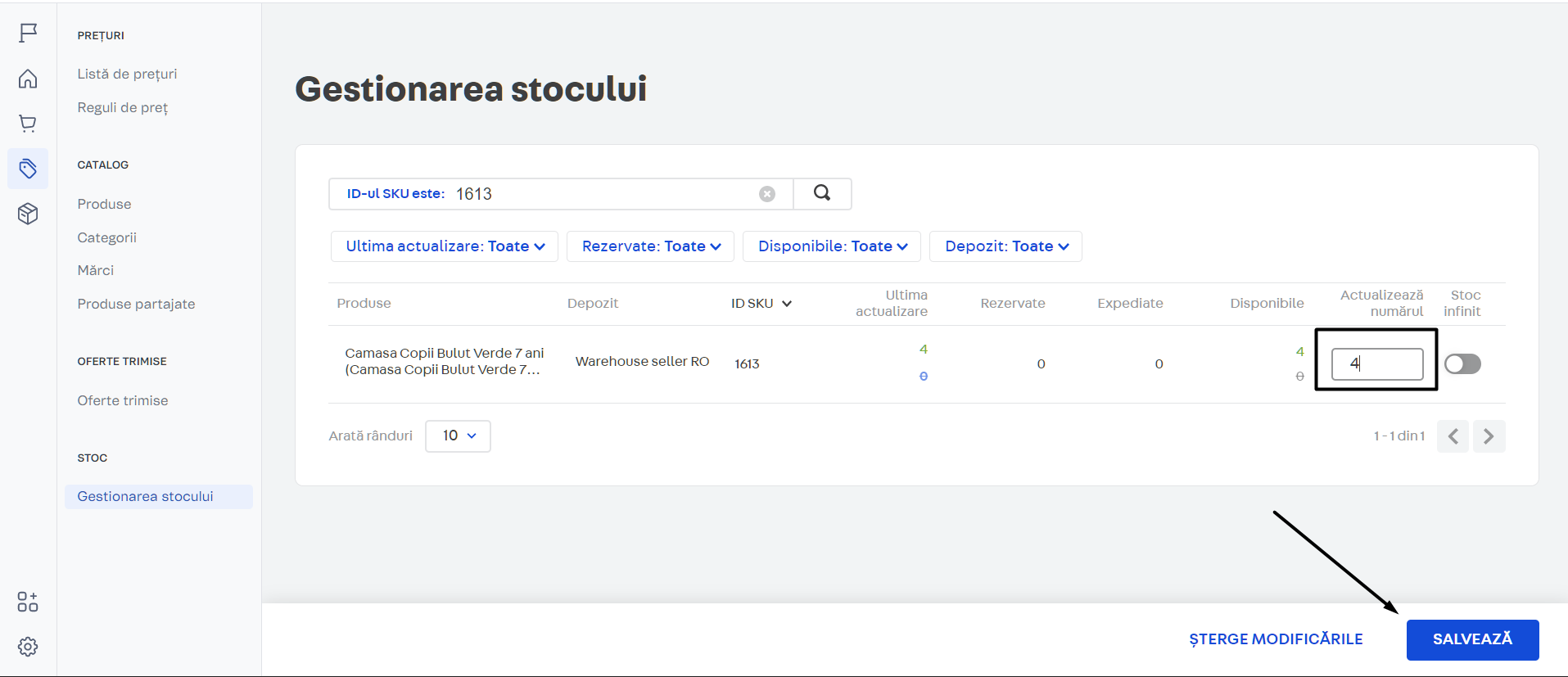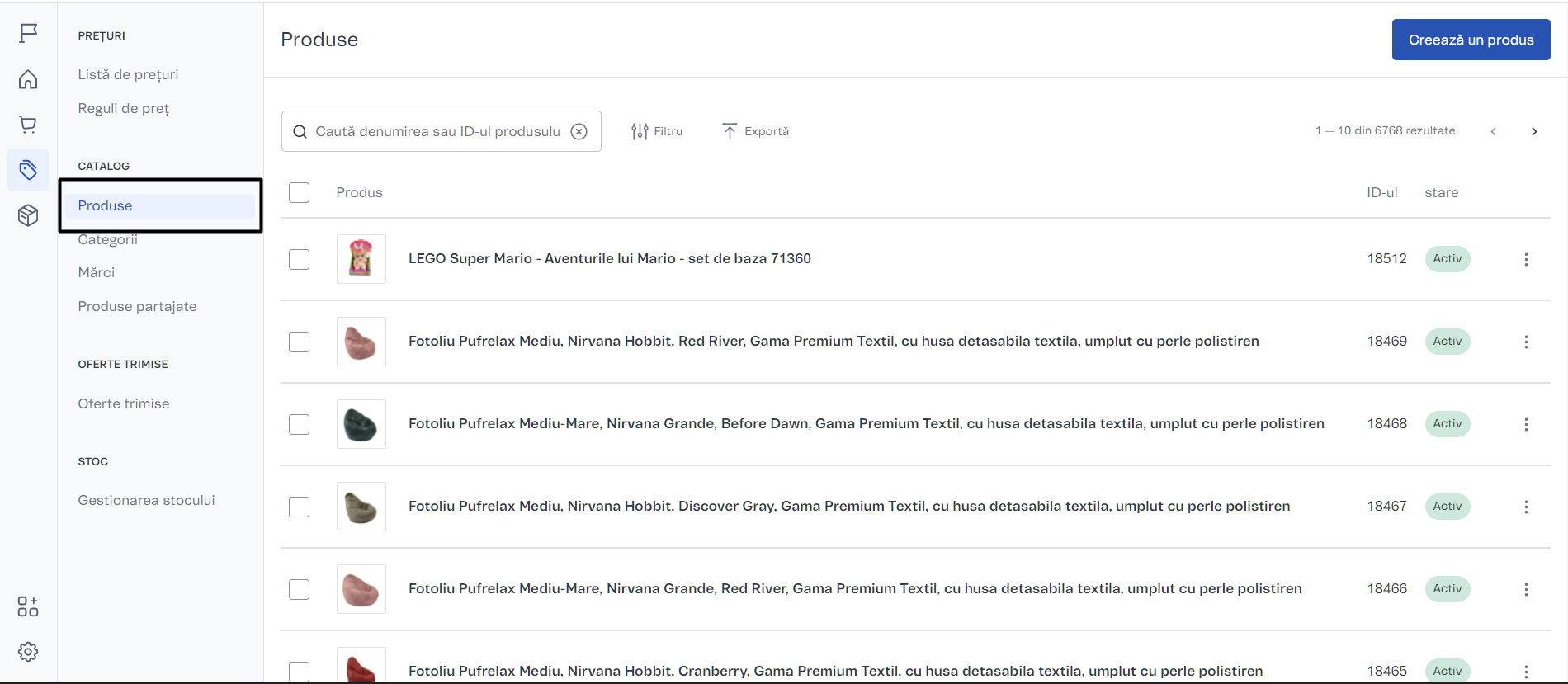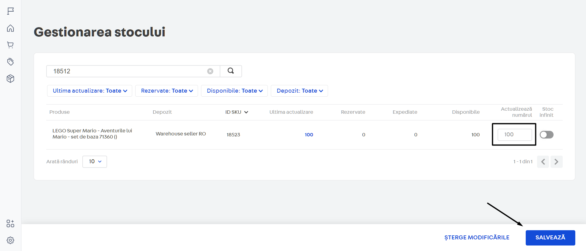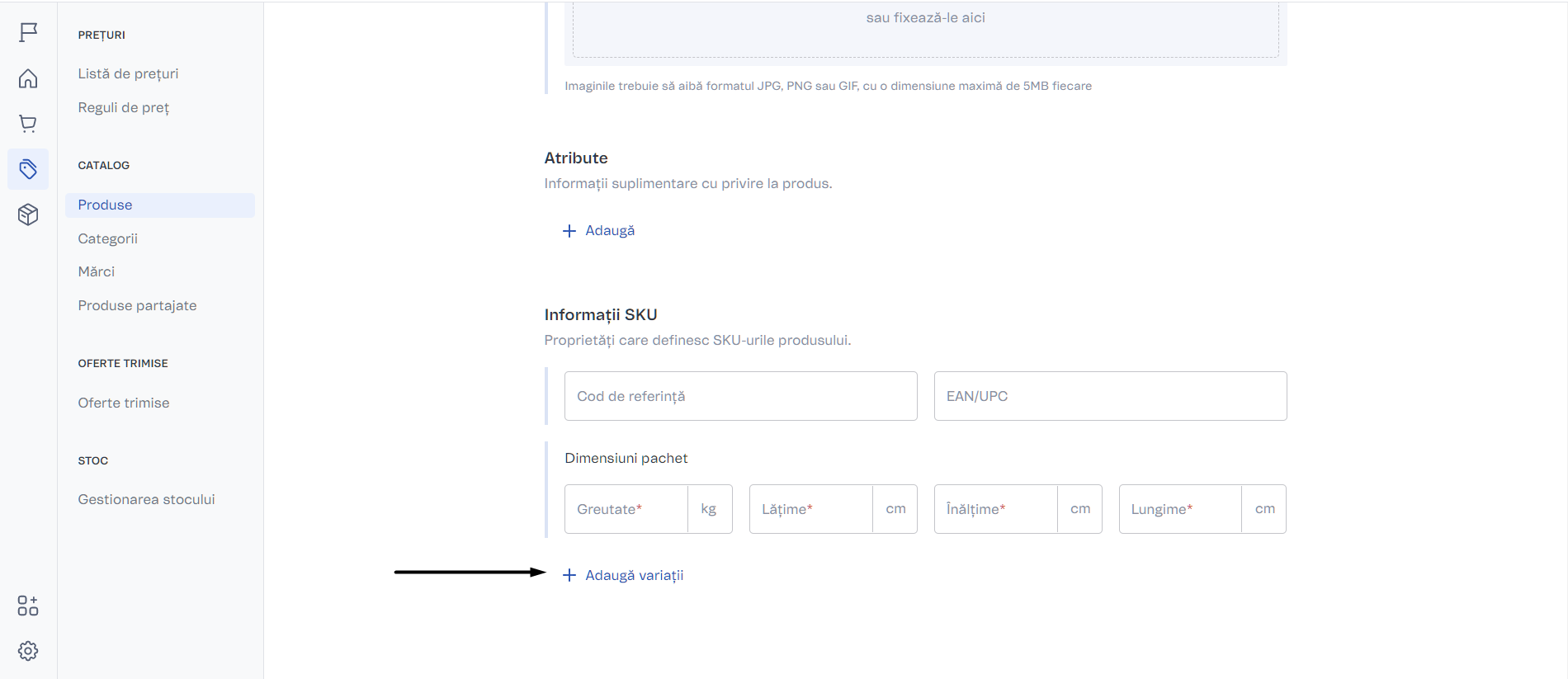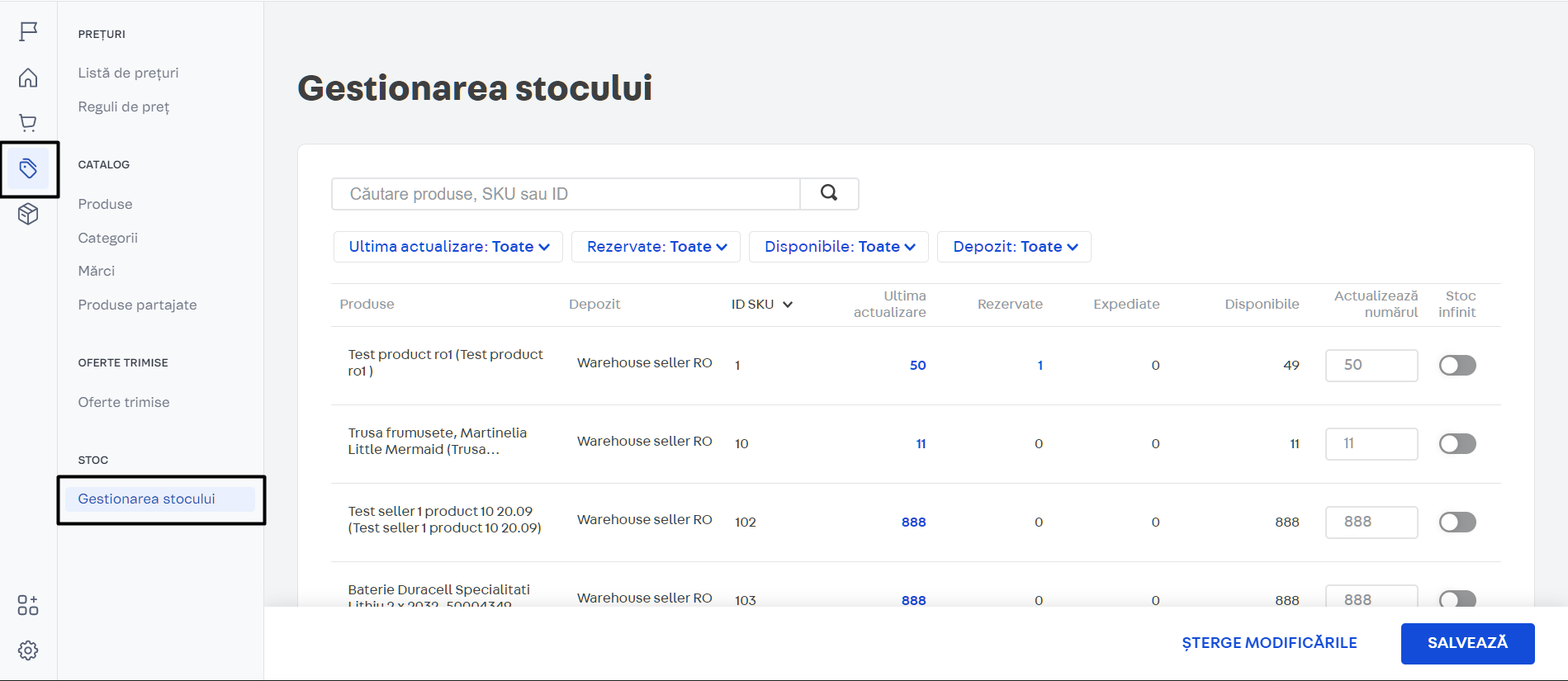 • Listare manuală - listarea produselor unul câte unul, direct din contul de seller, completarea manuală a caracteristicilor produsului, adăugarea imaginilor, prețurilor și a stocului.