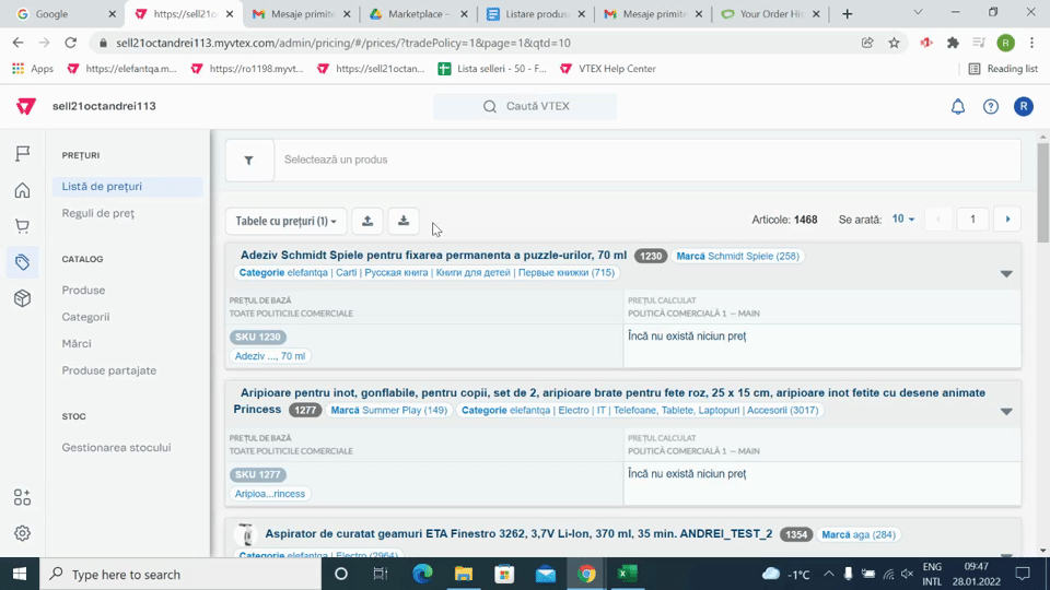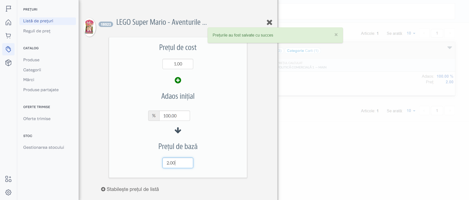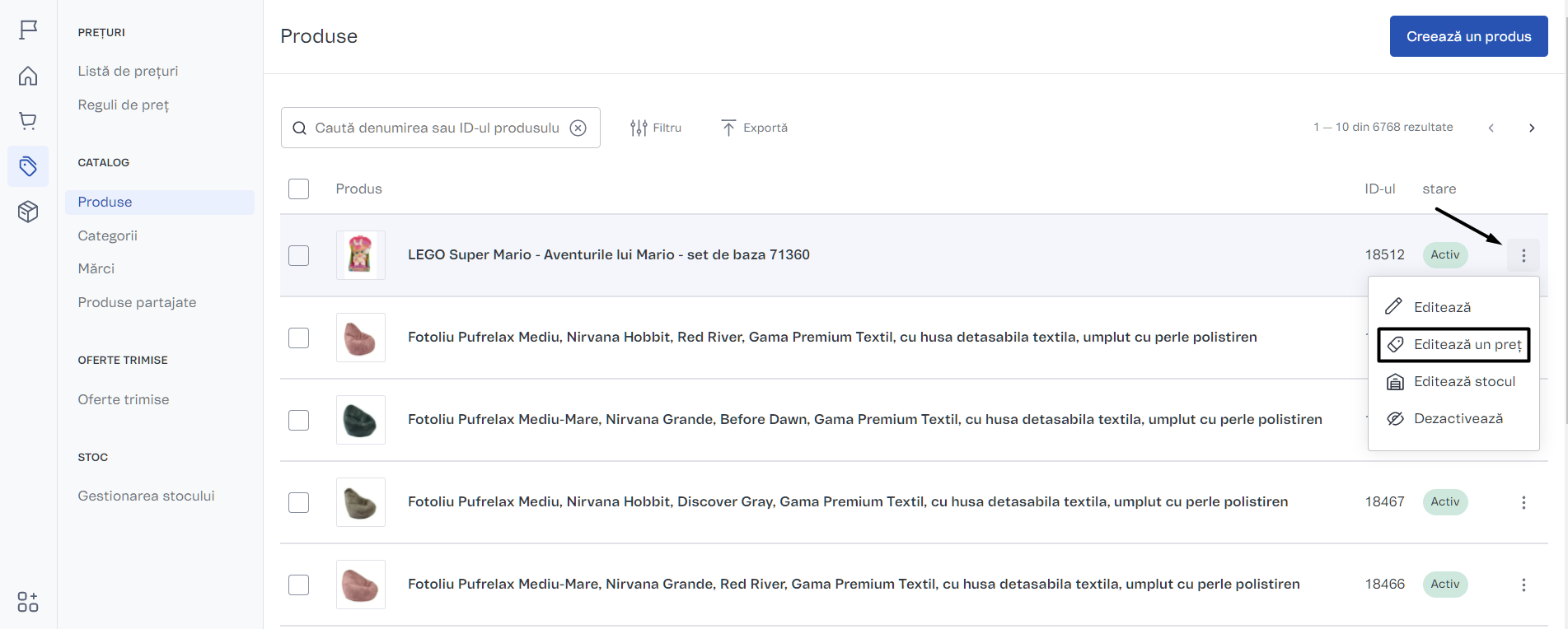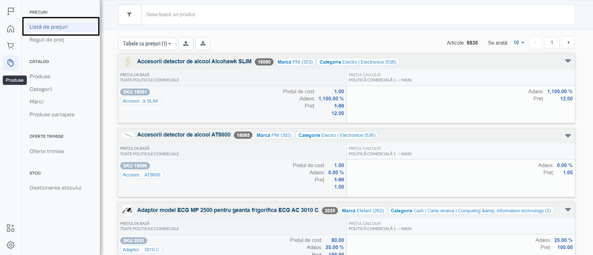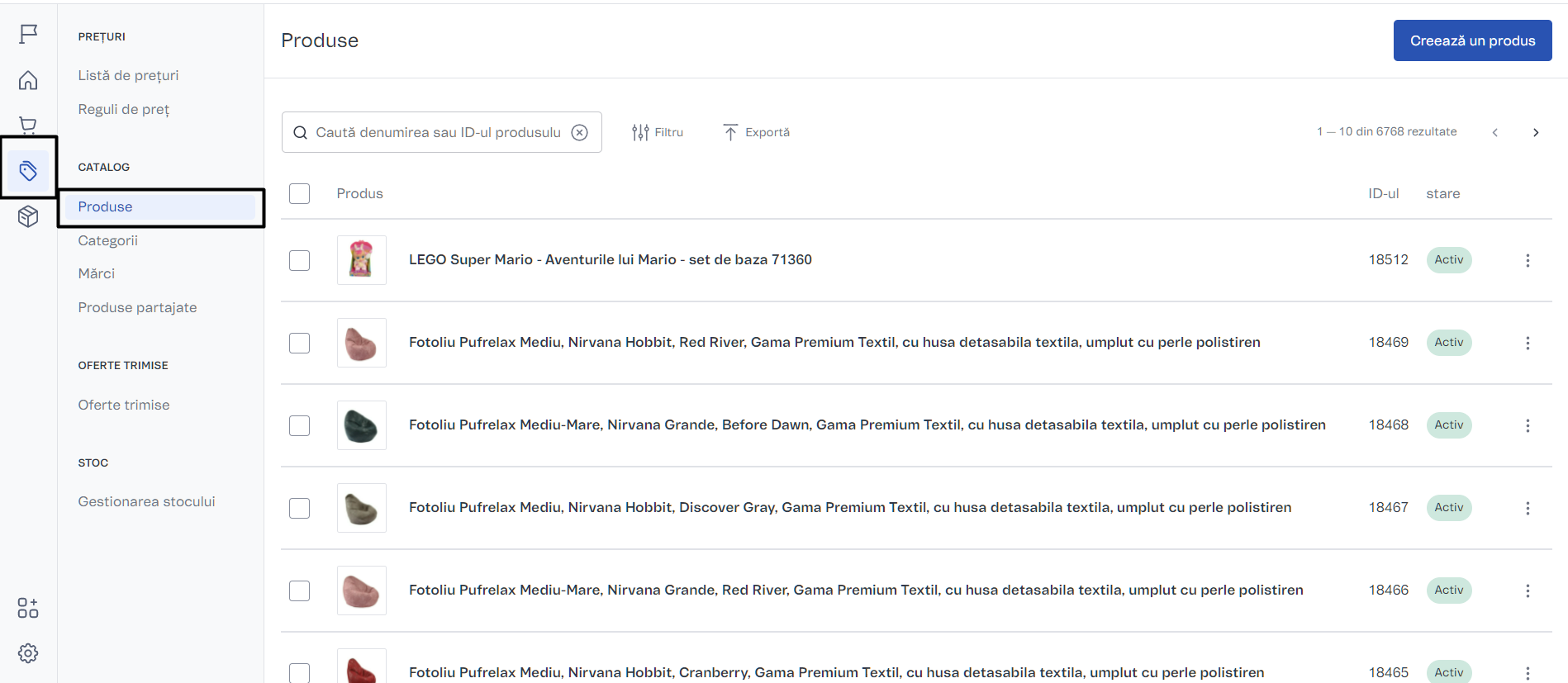 • Listare manuală - listarea produselor unul câte unul, direct din contul de seller, completarea manuală a caracteristicilor produsului, adăugarea imaginilor, prețurilor și a stocului.